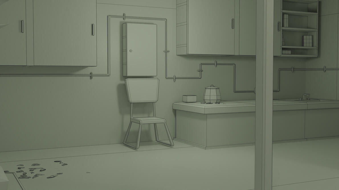 - Environment and character is modeled in Blender and textured in Adobe Substance Painter and Clip Studio Paint.